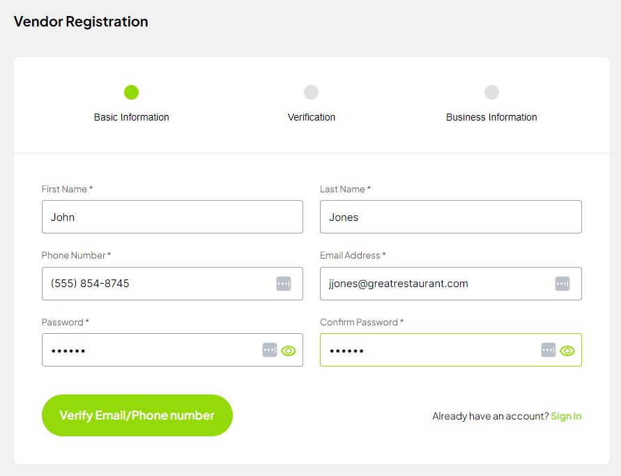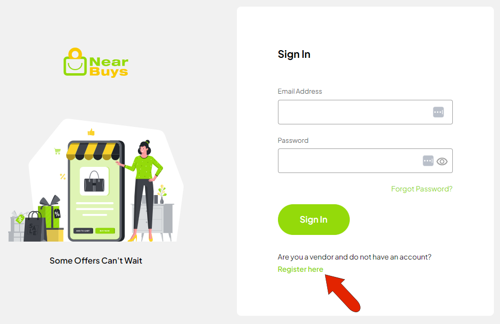 Once approved, you will receive a welcome email with instructions. Use your email and password to sign in to your vendor Dashboard.